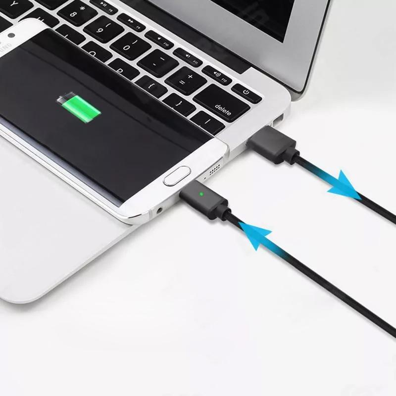 Braided USB cable with magnetic micro USB connector. The cable allows you to charge devices and data transmission. A special cable braid makes it highly resistant to damage. Magnetic tip can be disconnected from the cable and stay in the phone socket – this limits socket wear.