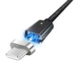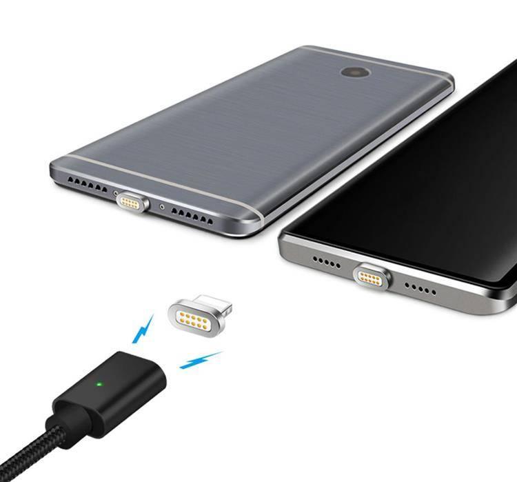 Braided USB cable with magnetic USB type-C connector. The cable allows you to charge devices and data transmission. A special cable braid makes it highly resistant to damage. Magnetic tip can be disconnected from the cable and stay in the phone socket – this limits socket wear.