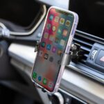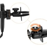 Two-stage clamp adjustment allows mounting the holder in air vents with different thickness "fins".