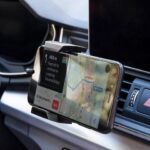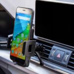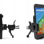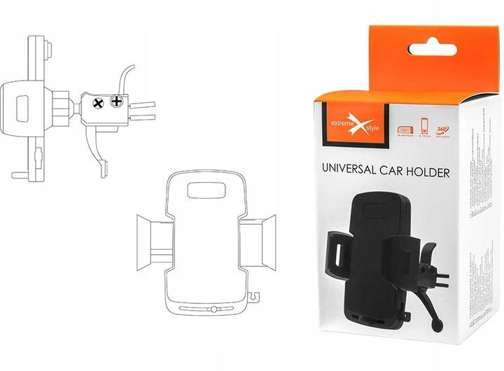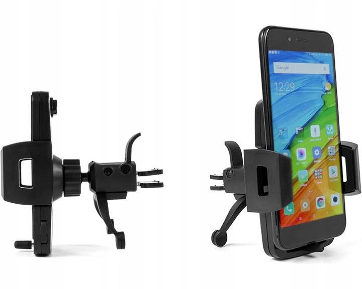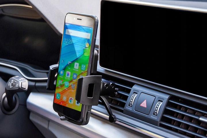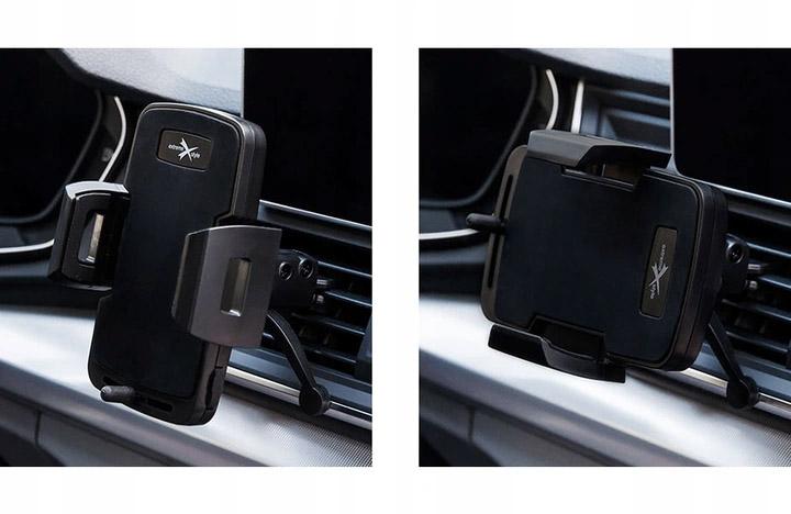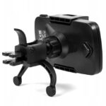 Universal holder for mobile phones fitted to the air vent is an option for drivers who do not want to limit visibility on the windshield. The holder has additional feet that support the holder with the dashboard and thus stabilize its position.