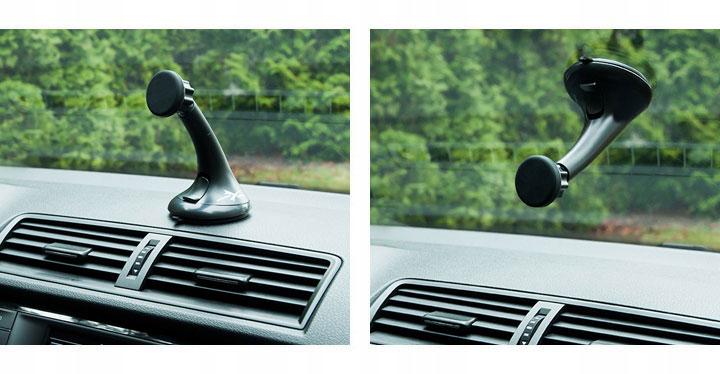 Magnetic holder for mobile phones compatible with any phone model. Holder set has two blades: a rectangular mounting under a flap or pouch and a circular with pad of adhesive gel. Using a strong magnet provides a stable hold the phone on the holder.