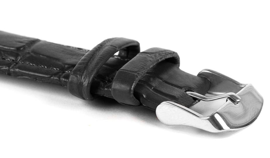 The high-quality, anti-allergic crocodile-grain leather strap is great for a variety of styles.