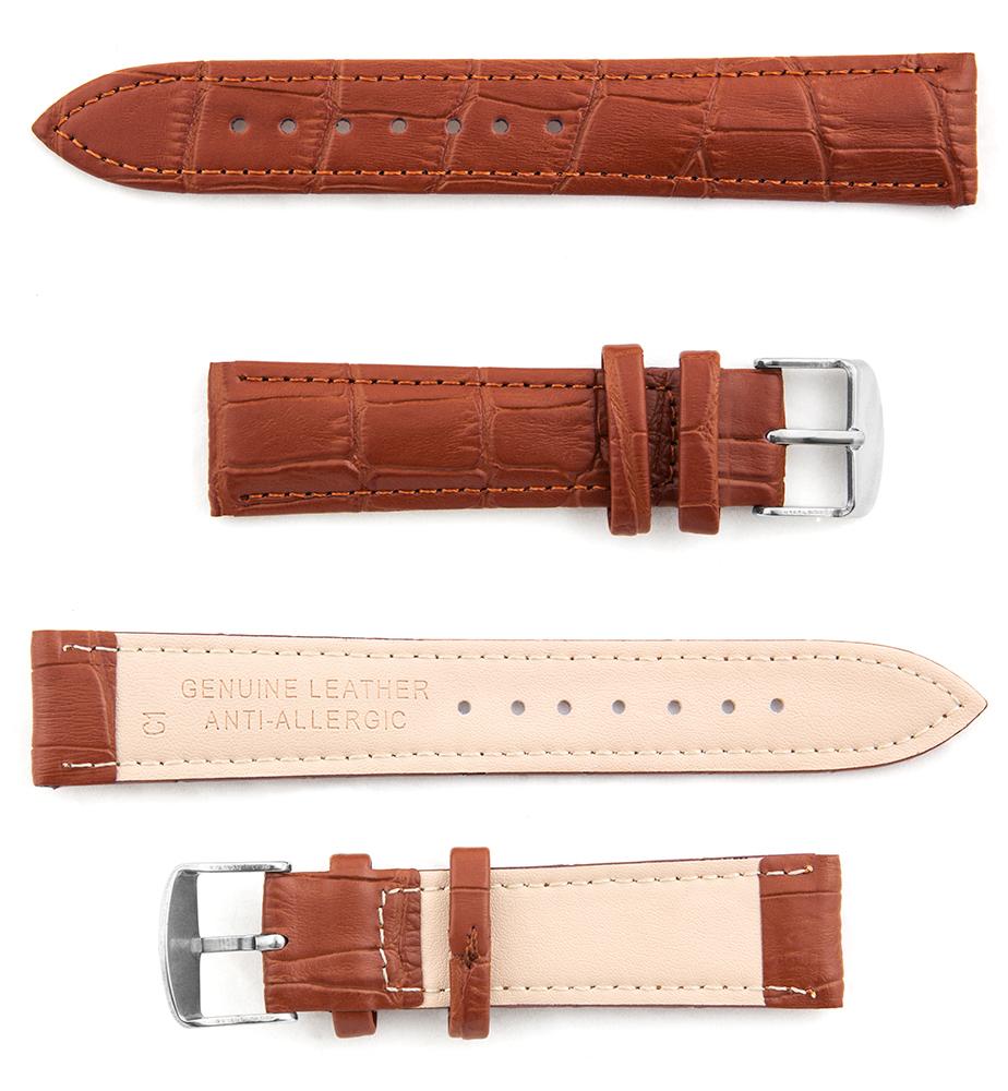 The high-quality, anti-allergic crocodile-grain leather strap is great for a variety of styles.