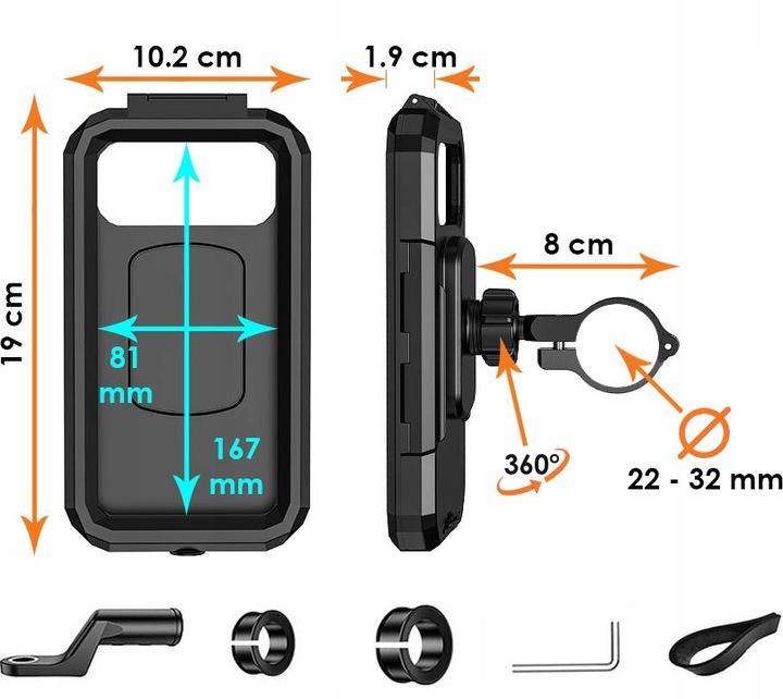 Thanks to the use of universal solutions, our holders are perfect for various types of motorcycles and fit various phone models. The hard case of the holder has internal dimensions of 167 x 81 x 10 mm.