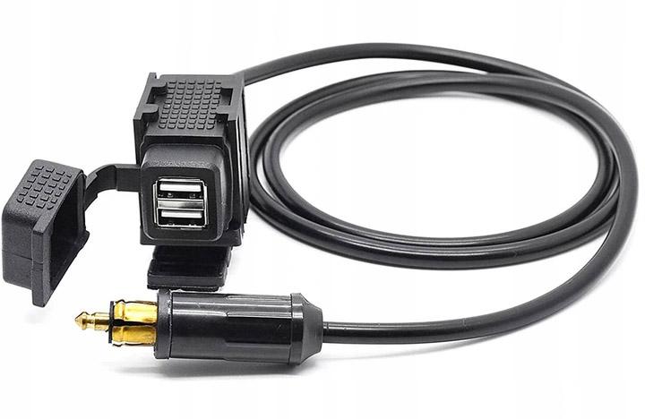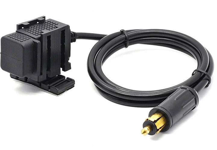 Motorcycle socket with DIN ISO 4165 connector compatible with BMW and Triumph motorcycles. Universal USB outputs make the socket is compatible with virtually any device available on the market, eg. navigation, mobile phones and others.