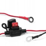 A 1.8 m long power cable is attached to the socket. The length of the cable has been optimally selected so that it can be routed as conveniently and invisibly as possible from the battery. One end of the cable is terminated with ring terminals.