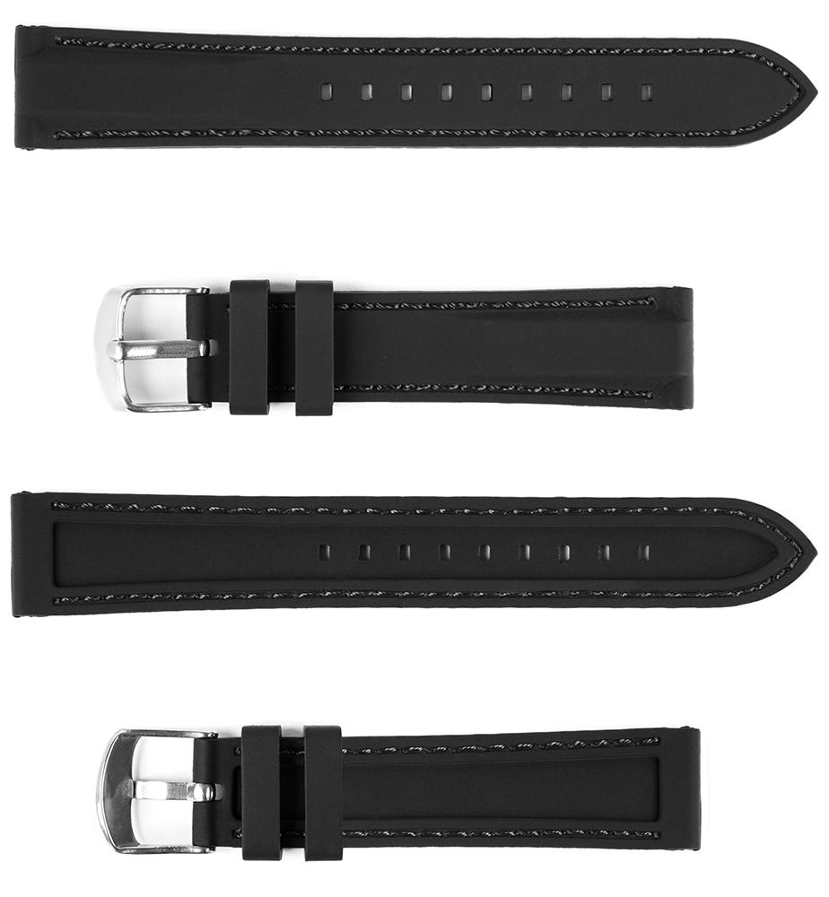 Pasek silikonowy Z02 – czarny – czarna nić – 18 mm