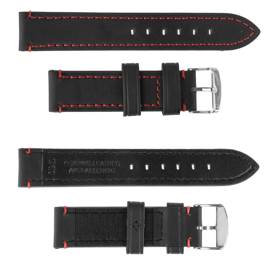 Pasek skórzany C18 – czarny – czerwona nić – 22 mm