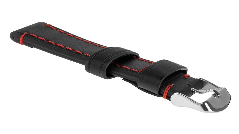 Pasek skórzany C18 – czarny – czerwona nić – 24 mm