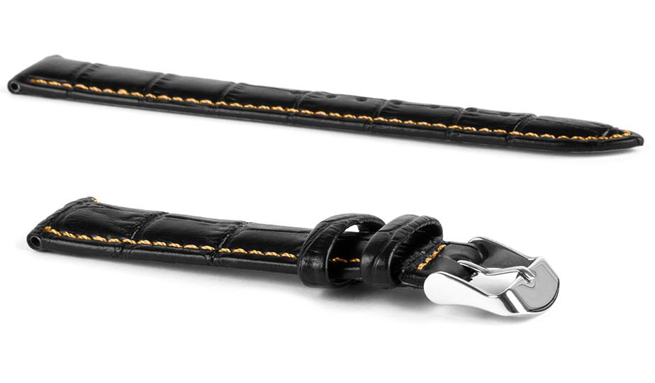 Pasek skórzany C6 – czarno-pomarańczowy – 22 mm