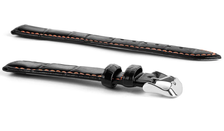 Pasek skórzany C7 – czarny – pomarańczowa nić – 22 mm