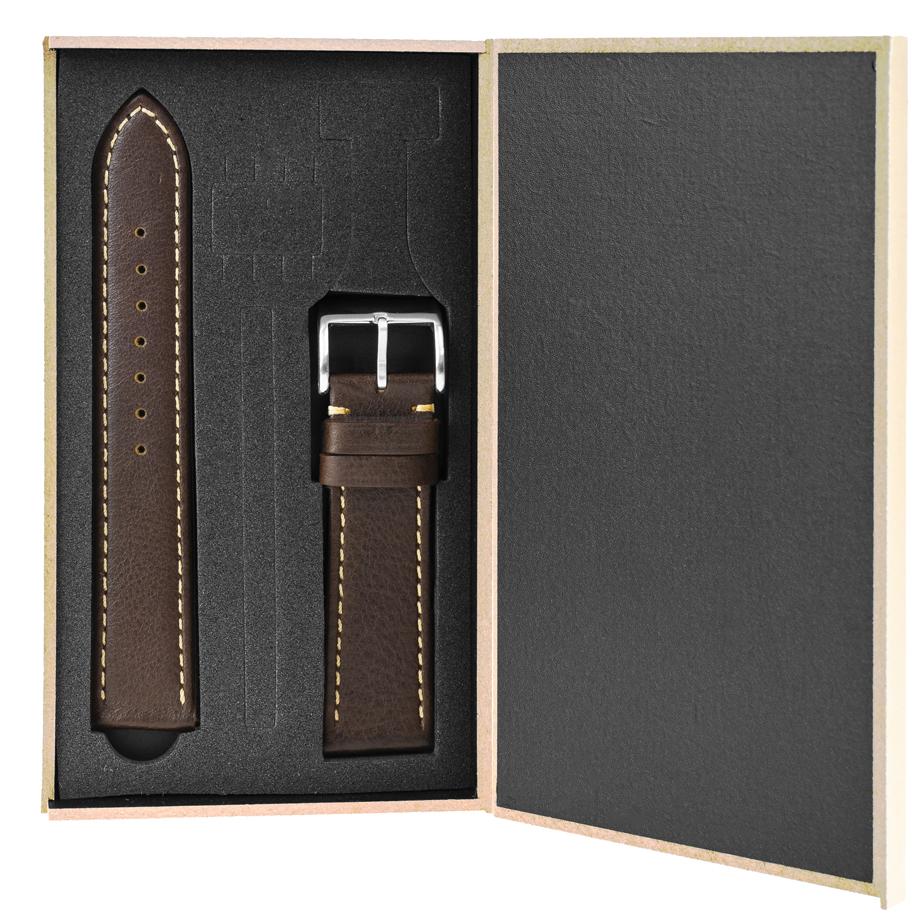 Pasek skórzany Premium A06-20 – ciemny brąz – beżowa nić – 20 mm