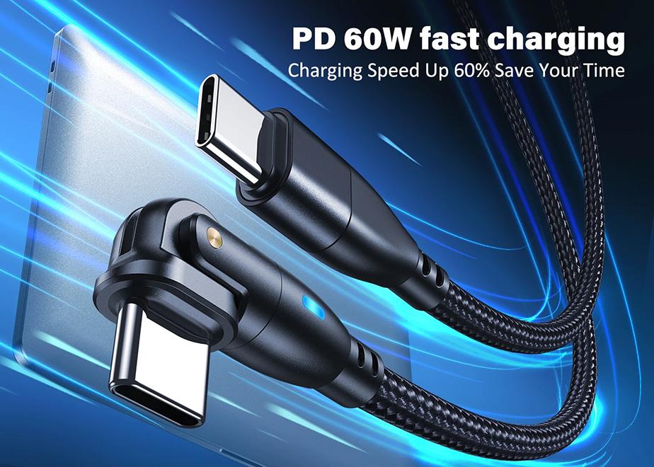 Reinforced braided cable Spider ROTATION 180° – 60 W – USB typ-C – USB typ-C – 1.5 m