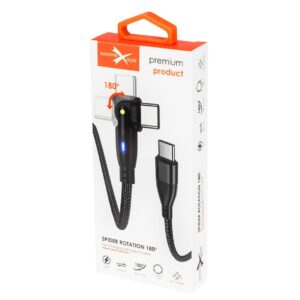 Wzmocniony kabel pleciony Spider ROTATION – 180 – 60 W – USB typ-C – USB typ-C – 1 m – czarny