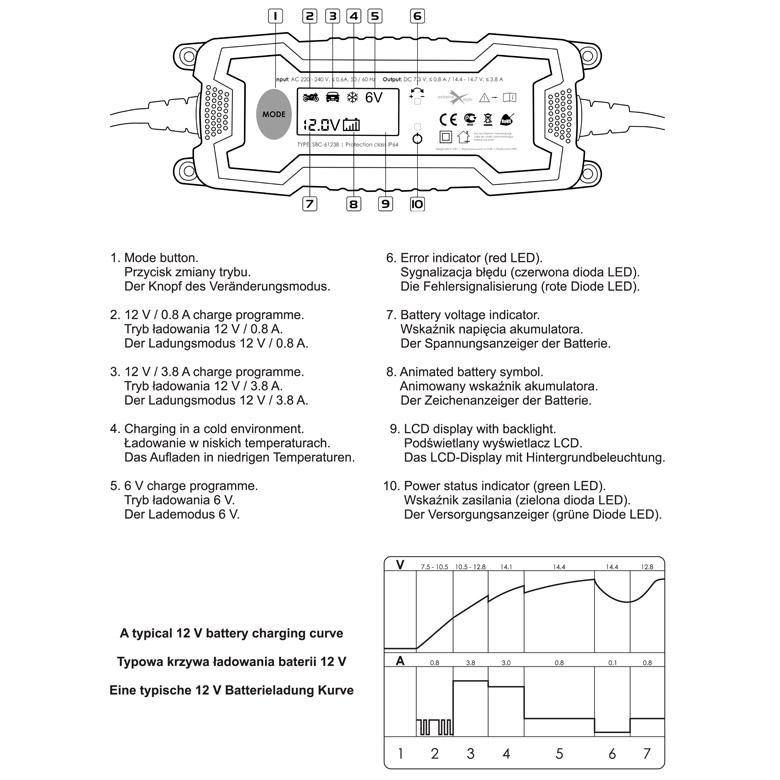 – tryb "zimowy" – gwarantuje pełne i efektywne naładowanie akumulatora, nawet w bardzo niskiej temperaturze otoczenia;