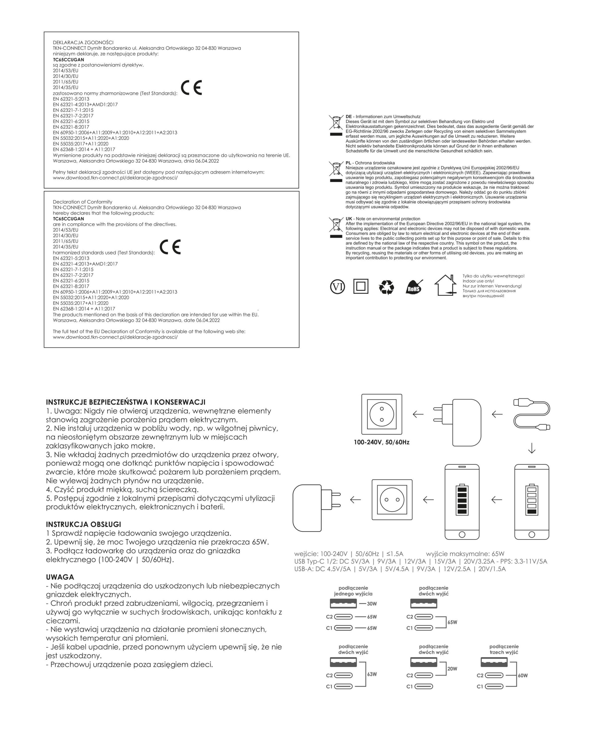 Wyjście USB Type-C: FCP, SCP, AFC, QC3.0, SFCP, PD3.0 – 65W/PPS/QC4+, DCP, Apple 2.4A
