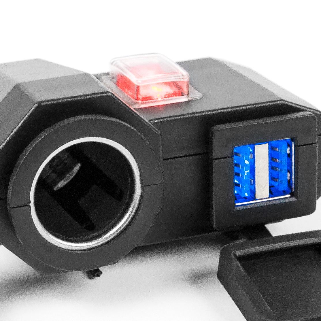 Gniazdo zapalniczki + 2 x USB – MUS04-L jest stabilnym źródłem prądu 5 V dla dwóch urządzeń oraz wyjściem 12-24 V dla trzeciego. Niezależnie od tego czy korzystasz w czasie jazdy na motocyklu z telefonu, nawigacji GPS, kamery czy innego urządzenia gniazdo marki eXtremestyle® to rozwiązanie problemu zasilania ich.
