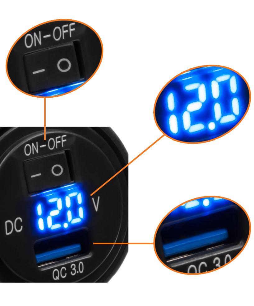 Motocyklowe gniazdo z wyświetlaczem – USB QC – MUS13