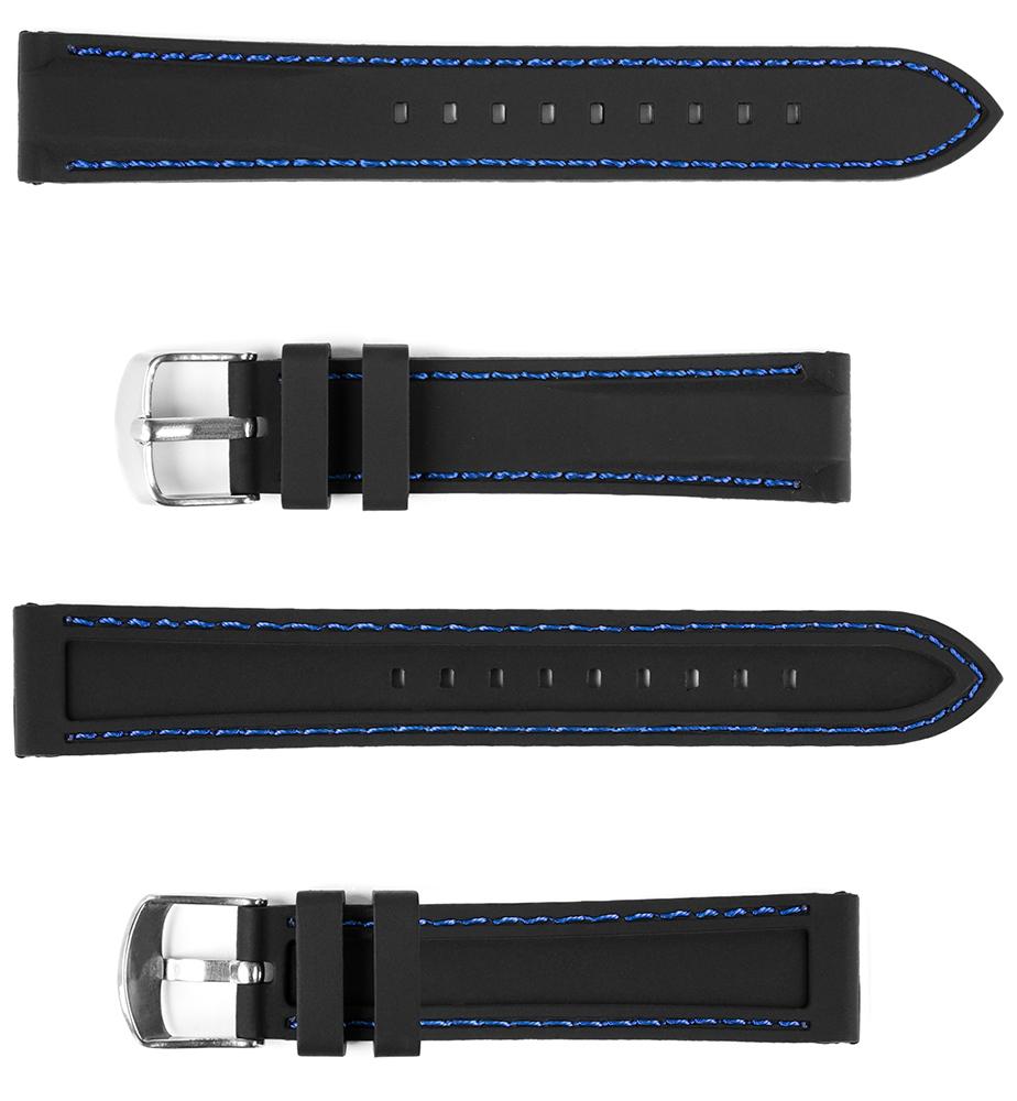 Pasek silikonowy Z02 – czarny – ciemnoniebieska nić – 24 mm