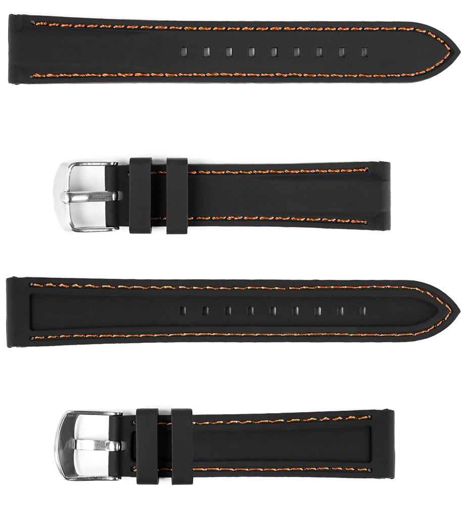 Pasek silikonowy Z02 – czarny – pomarańczowa nić – 20 mm