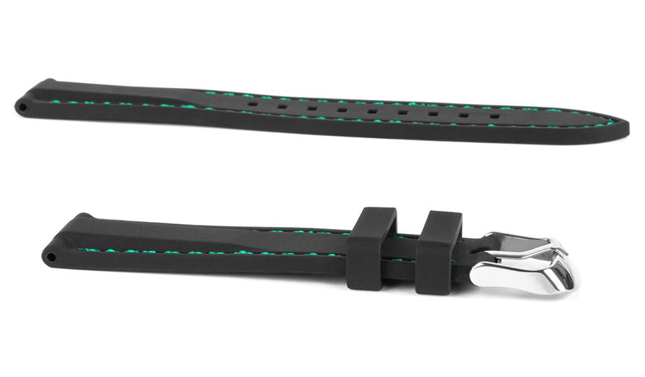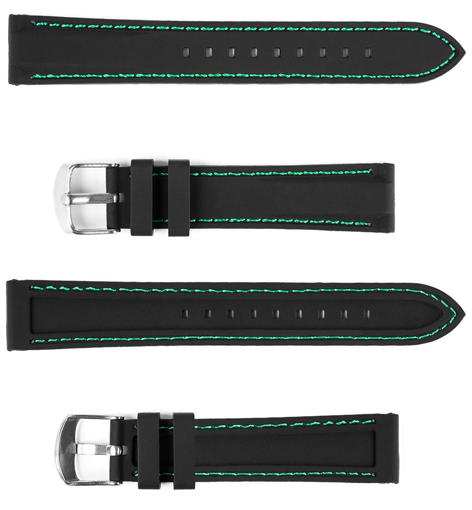 Pasek silikonowy Z02 – czarny – zielona nić – 18 mm