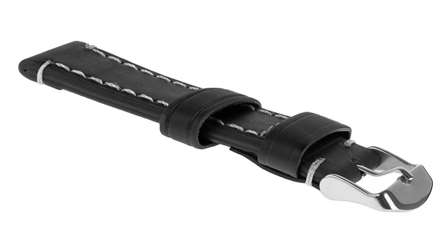 Pasek skórzany C18 – czarny – biała nić – 22 mm