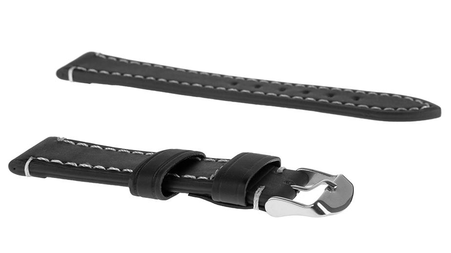 Pasek skórzany C18 – czarny – biała nić – 24 mm