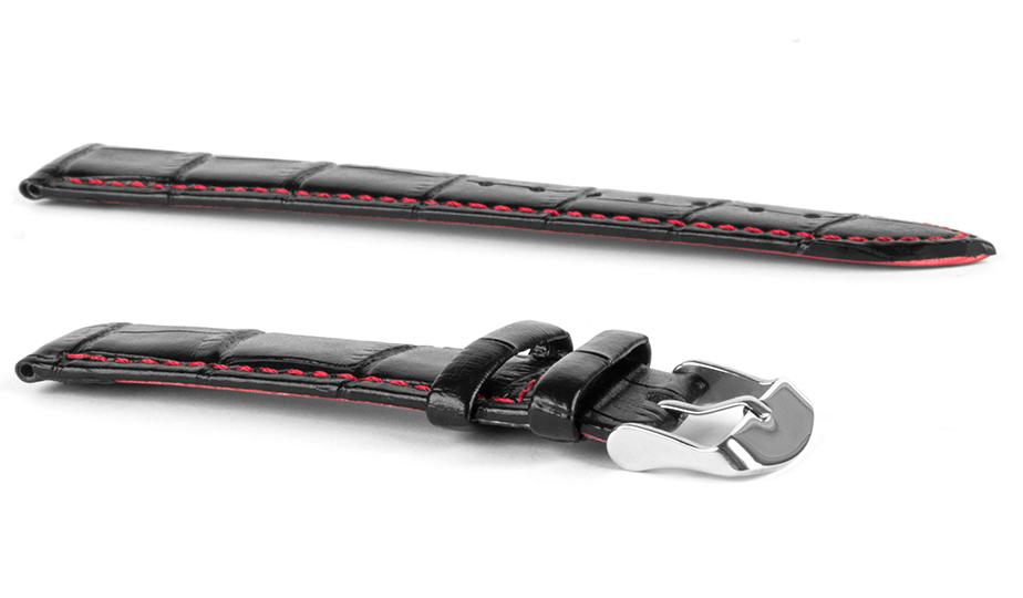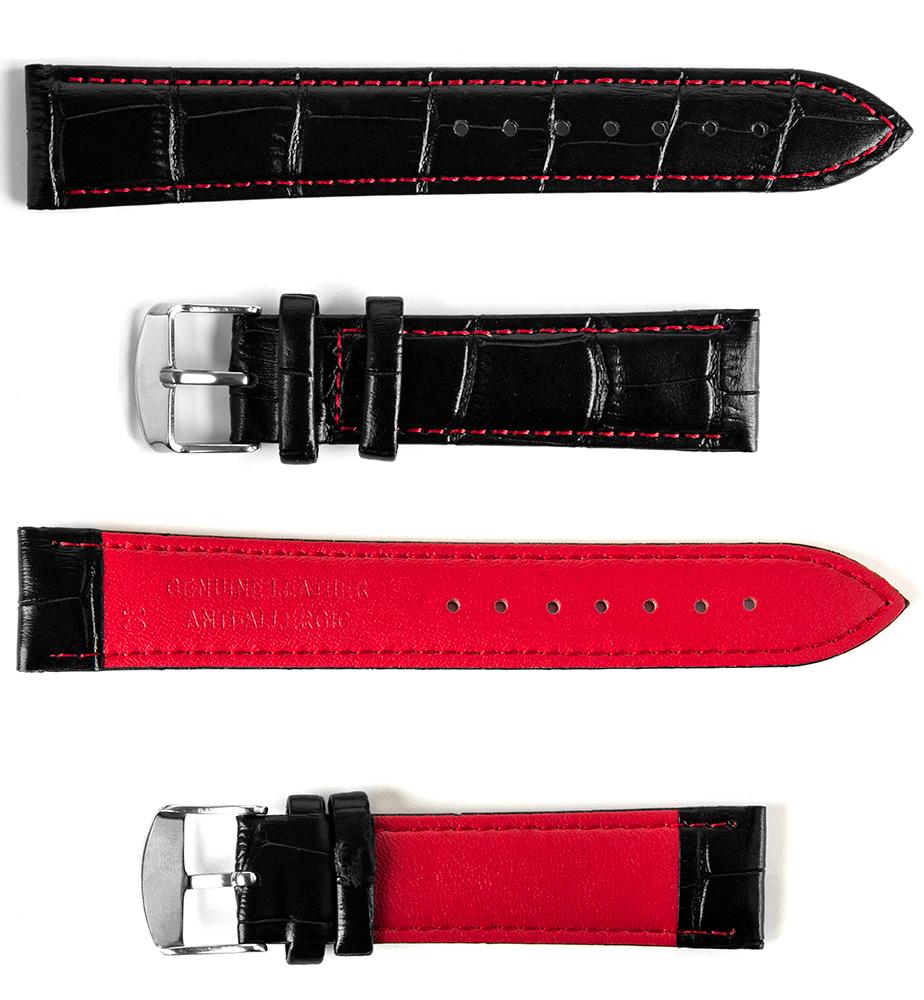 Pasek skórzany C6 – czarno-czerwony – 22 mm