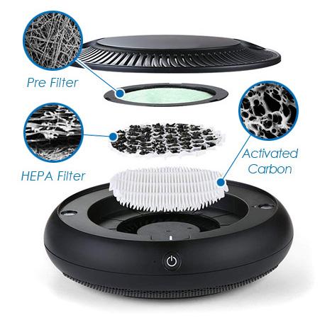 Filtr HEPA który znajduje się w oczyszczaczu powietrza PureZone CAP1, jest w stanie usunąć mikroskopijne cząsteczki zanieczyszczeń pyłem zawieszonym PM10 i PM2.5 ze skutecznością 99,5%.