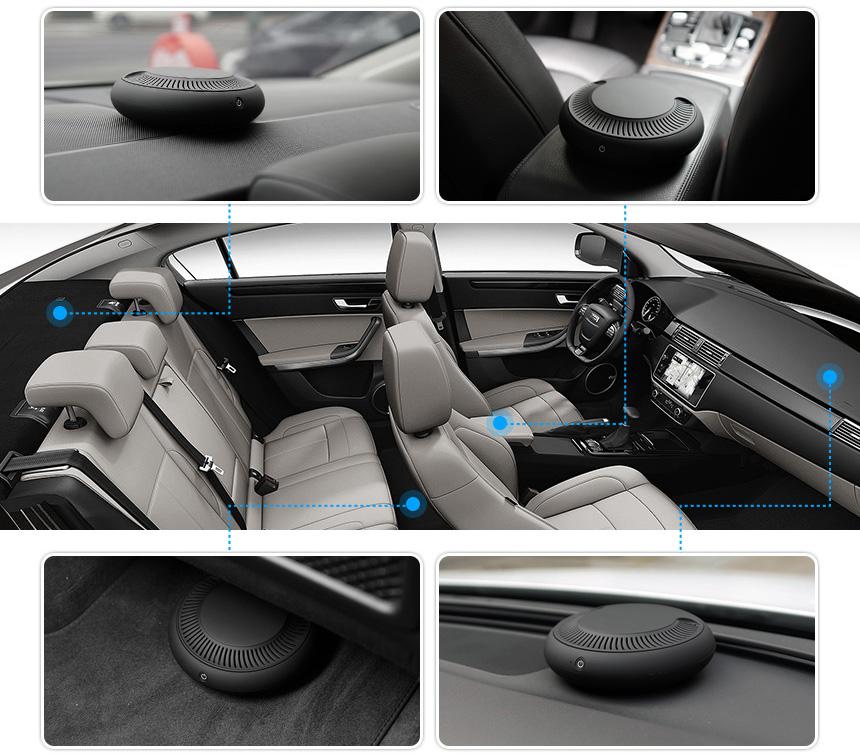 Kompaktowa obudowa i zasilanie poprzez ładowarkę samochodową umożliwiają umieszczenie oczyszczacza powietrza CAP1 w praktycznie dowolnym miejscu wewnątrz samochodu.
