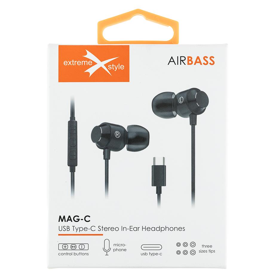 Słuchawki przewodowe – stereo – douszne – USB Typ-C – MAG-C AIRBASS – czarne