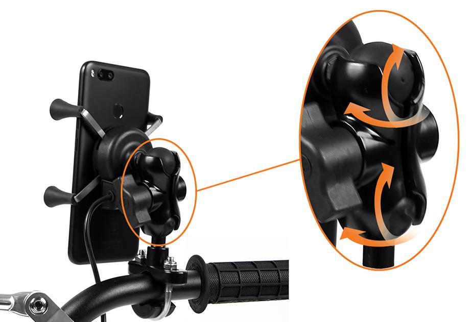 Dzięki swojej konstrukcji nie tylko umożliwia ustawienie telefonu zarówno w pionie jak i w poziomie, ale i zmianę kąta nachylenia względem kierownicy.