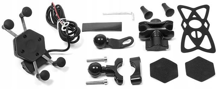 Uchwyt posiada uniwersalną ładowarkę USB o natężeniu 2.1 A. Wyjście USB zostało zabezpieczone gumową zaślepką chroniącą przed dostawaniem się kurzu i wody podczas gdy nie jest używane oraz dodatkowo wyposażone w mały, biały wyłącznik umożliwiający odcięcie zasilania gdy uchwyt nie jest używany.
