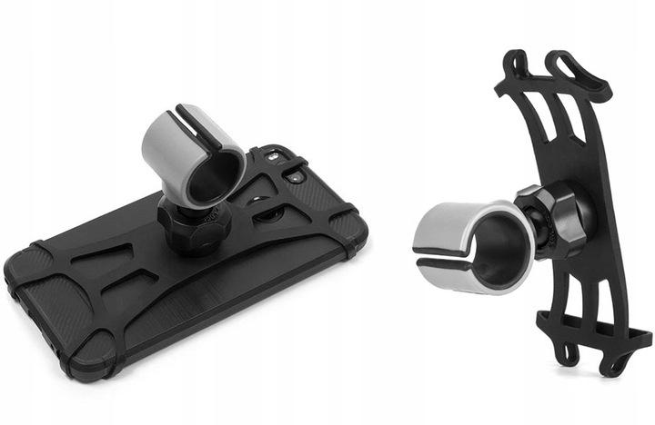 W tym modelu głowica uchwytu w całości składa się z mocnych gumek, takie rozwiązanie zajmuje minimum miejsca, a jednocześnie pozwala na zamocowanie w niej różnej wielkości smartfonów.