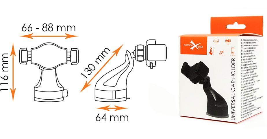 Uchwyt E-żel jest uchwytem niezwykle uniwersalnym i pasuje do różnych modeli telefonów od różnych producentów. Praktycznie każdy telefon o szerokości od 66 do 88 mm będzie do niego pasował.