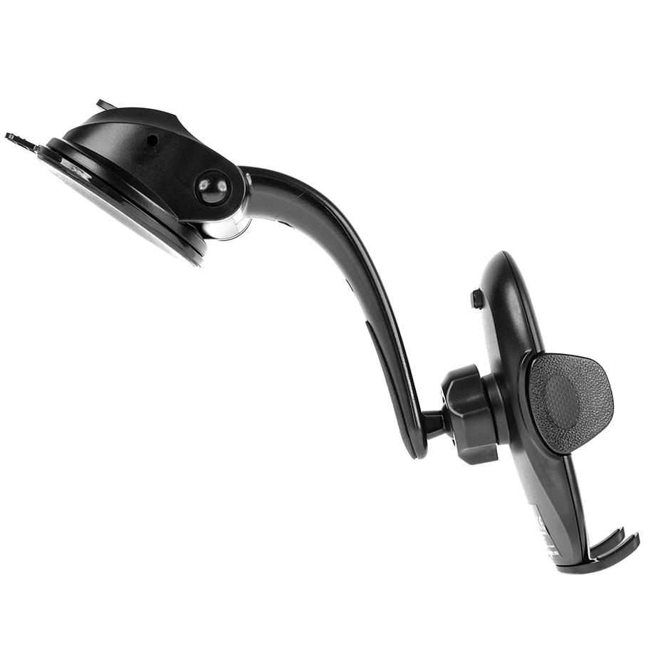 Kulowe połączenie głowicy z mocowaniem do szyby umożliwia ustawienie telefonu zarówno w poziomie jak i w pionie.