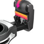 Taki system mocowania pozwala szybko i wygodnie wkładać i wyjmować telefon, bez konieczności dodatkowego przesuwania lub naciskania któregokolwiek elementu uchwytu.