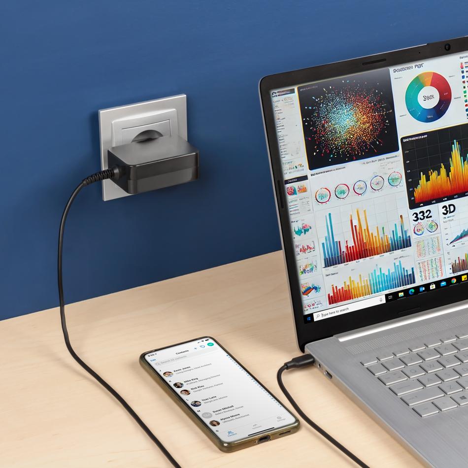 Bez względu na to, jakie urządzenie podłączysz – laptop, telefon czy inne sprzęty – ładowarka sama dobierze odpowiednie napięcie, zapewniając szybkie i bezpieczne ładowanie bez ryzyka uszkodzenia.