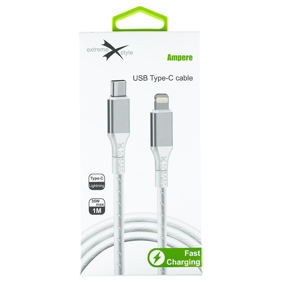 Kabel Ampere – USB typ-C – Apple Lightning – biały – 100 cm